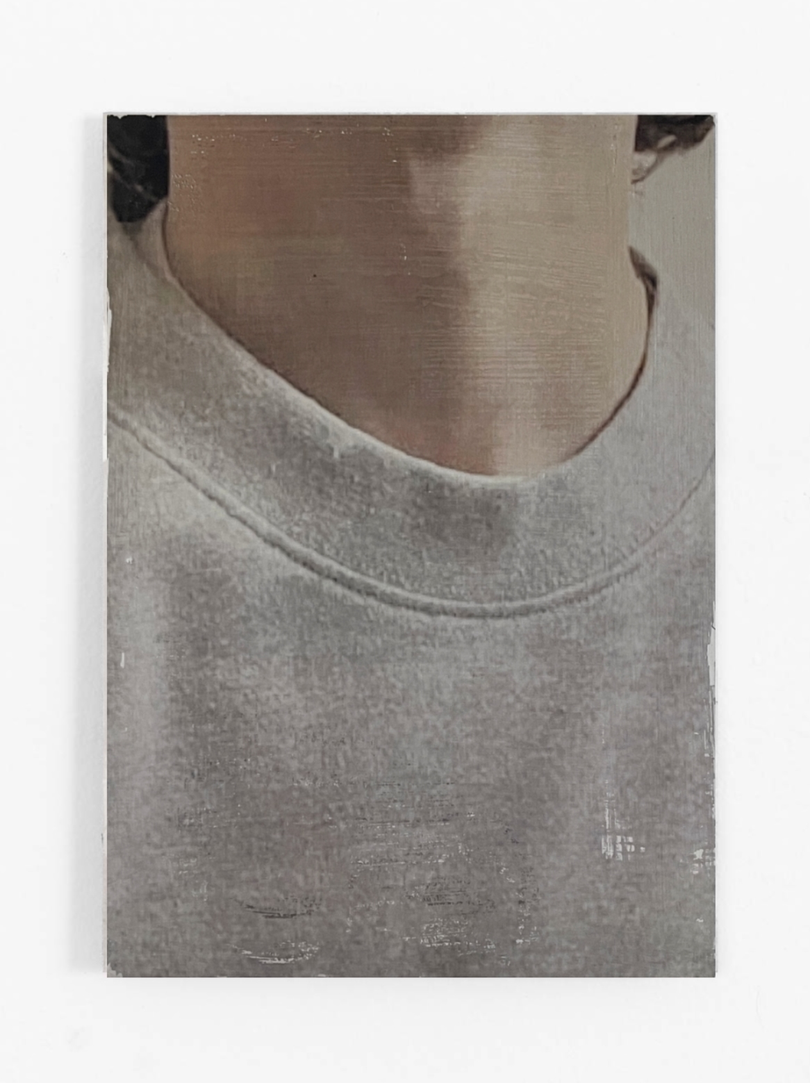 Jumper, 2025, hand-transferred photograph on aluminium, 40,5 x 28,5 cm |