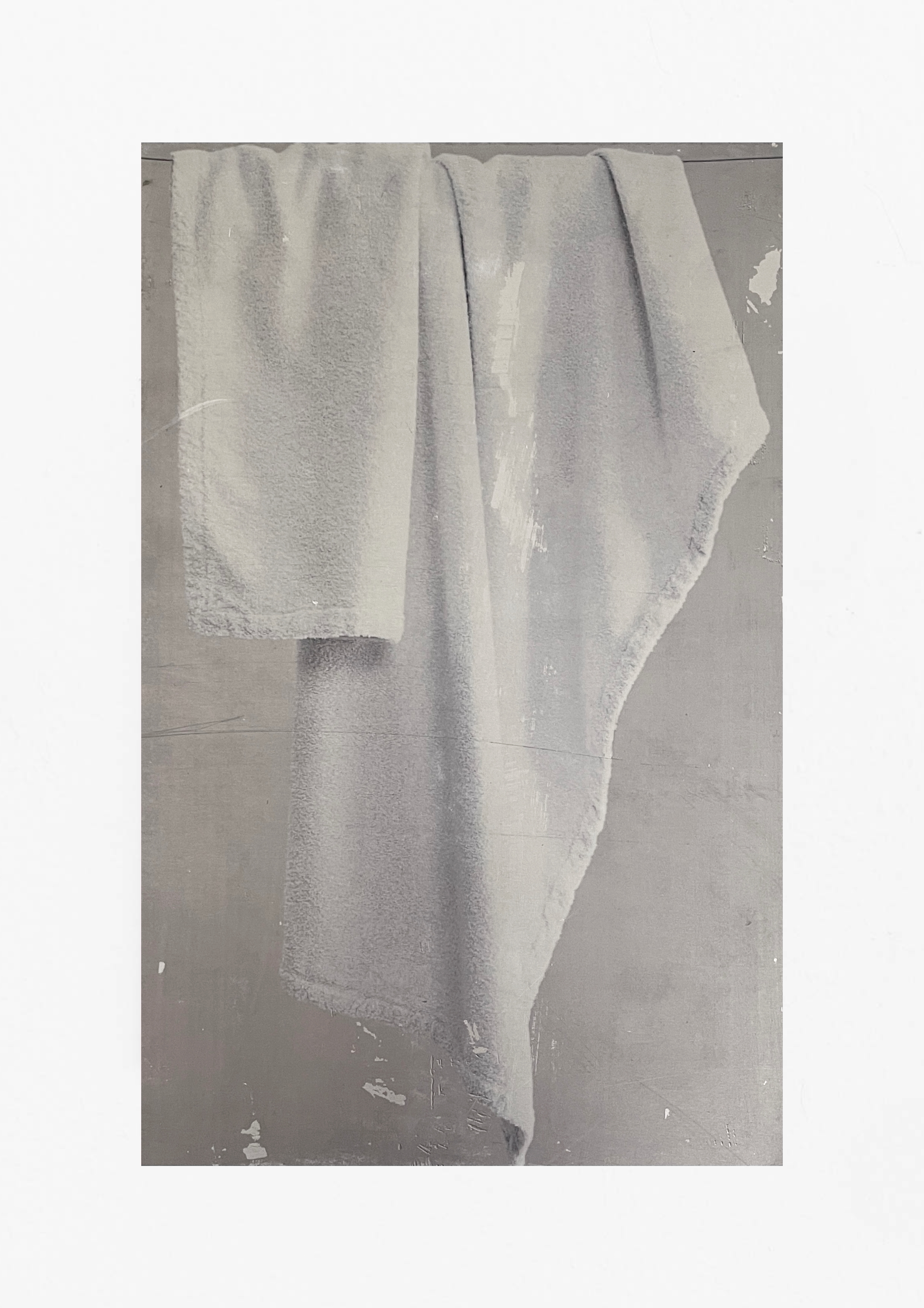 Towel, 2025, hand-transferred photograph on aluminium, 39 x 25 cm |